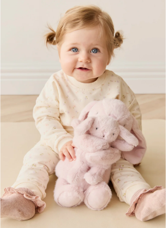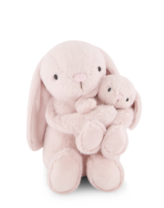 The perfect gift for your little ones to snuggle up with and love. Frankie is a 30cm mama bunny and comes together with her cutie 15cm baby. Our mama bunny's hands feature Velcro fastening so they can be separated to let baby free for play time, or kept together to hold their little darling close